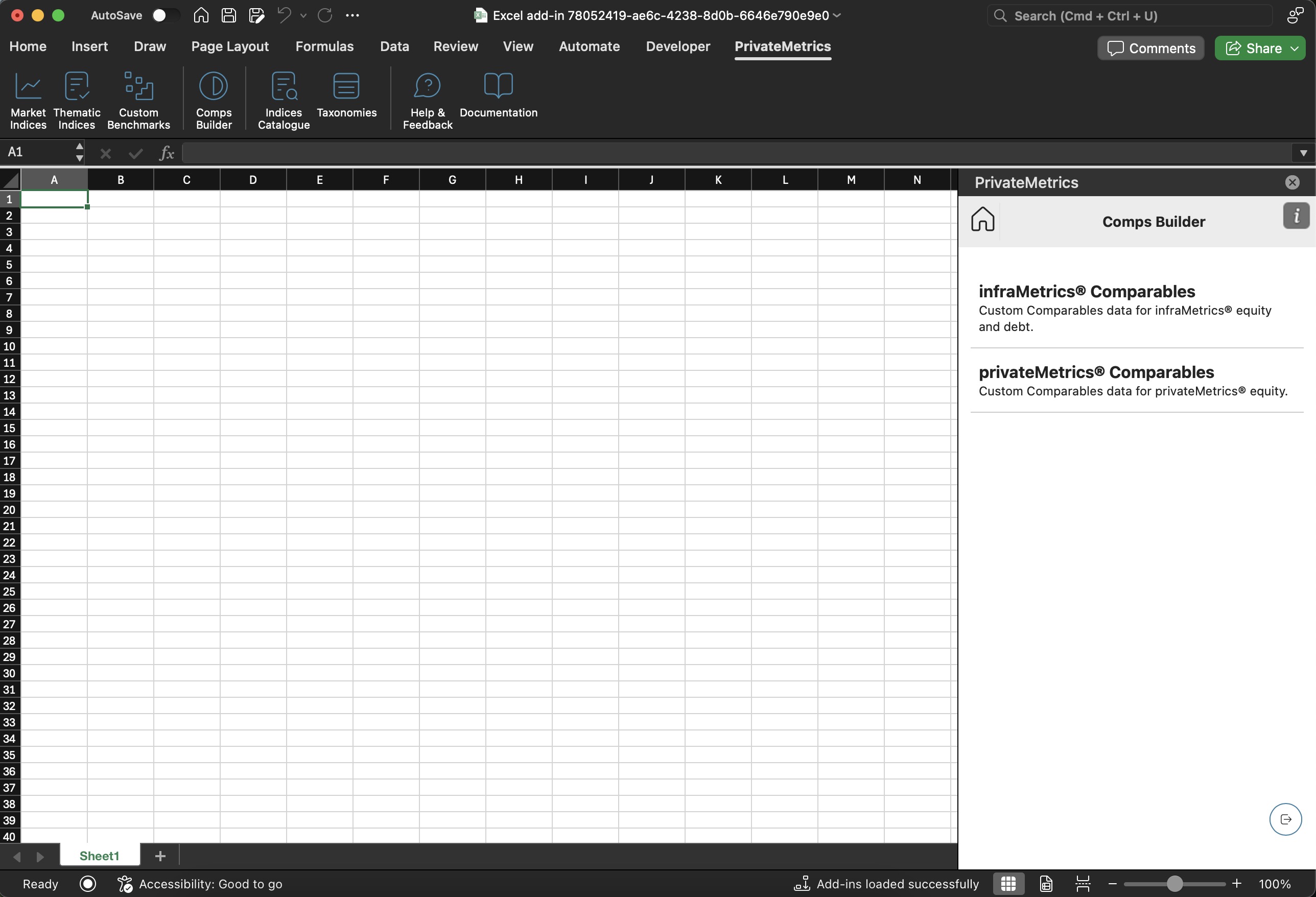 To access the Comps Builder Task Pane, navigate to the PrivateMetrics tab in the Ribbon Toolbar of Excel.
