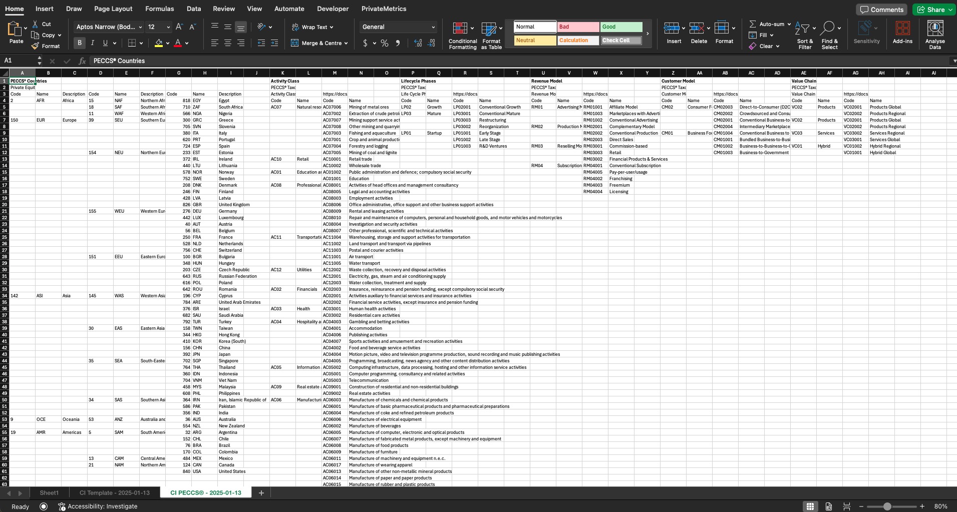 CB PECCS® - YYYY-MM-DD - List of all PECCS Pillars and geographies (regions, sub-regions, and countries) for user reference