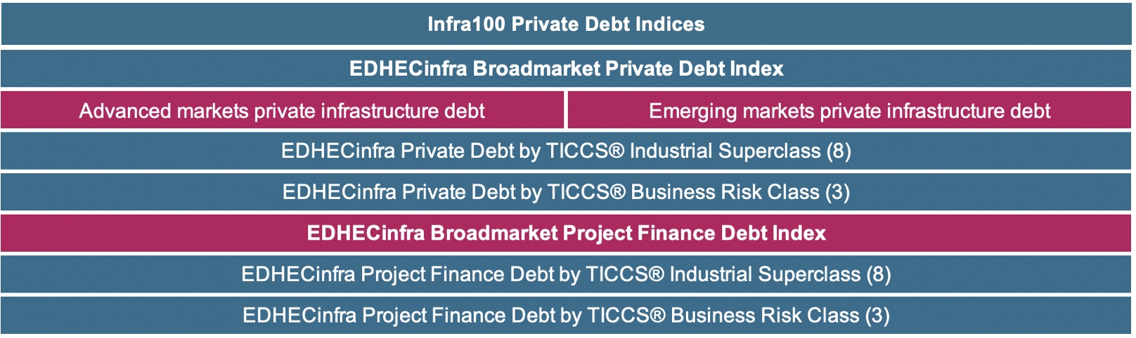 Measure the performance of the 100 latest senior debt instruments issued by the private infrastructure companies in any given market segmentBroad Market Private Debt Index: