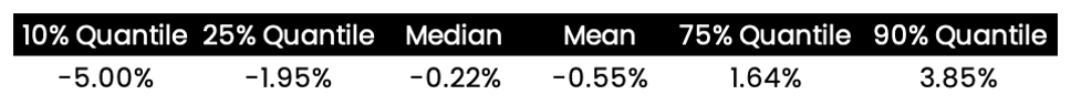 The produced valuations are in line with observed secondary market prices within a 5% margin of error. The below table shows a distribution of estimation errors when testing our model against 250+ deals.